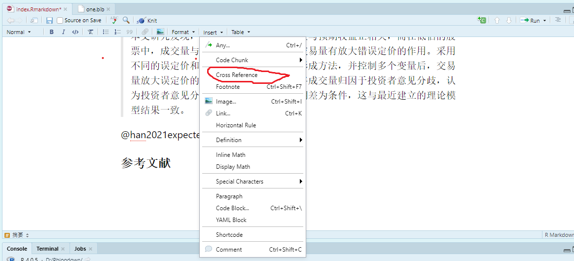 个人表达能力太差,感觉说清楚一个问题太难了!在统计之都论坛跟大家互动的过程中,发现用 RStudio 可视化编辑器(Visual Markdown Editor)写文档太方便了,具体可以参考该链接。但是,我的Rstudio可视化编辑器跟上面连接给的指南在参考文献引用上不同,并没有出现参考文献的引用工具。说不明白,直接上图吧!