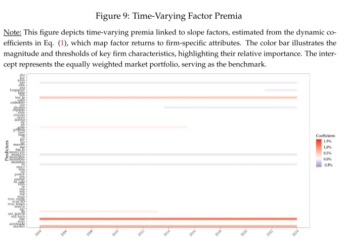 我们通过基于特征的因素分析了2004年至2023年美国股 票市场中的61家公司特征及其相关风险溢价。我们的研究结果通过各种 实证练习证实了重大结构性转变的存在,并强调了将这些突破和趋势纳 入因素模型和投资决策的重要性。时变风险溢价捕捉了斜率因子回报的 结构性断裂和长期趋势。